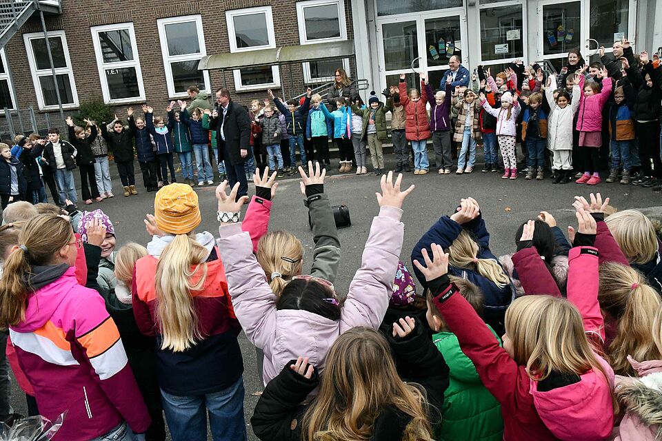 Gefreut haben sich auch mehr als 200 Schüler und Kita-Kinder auf dem Schulhof der Katholischen Grundschule in Anholt an der Schneidkuhle, als der Erste Mann der Stadt ihnen von der Eisbahn erzählte – und das Leuchten in den Augen der Mädchen und Jungen war groß.
