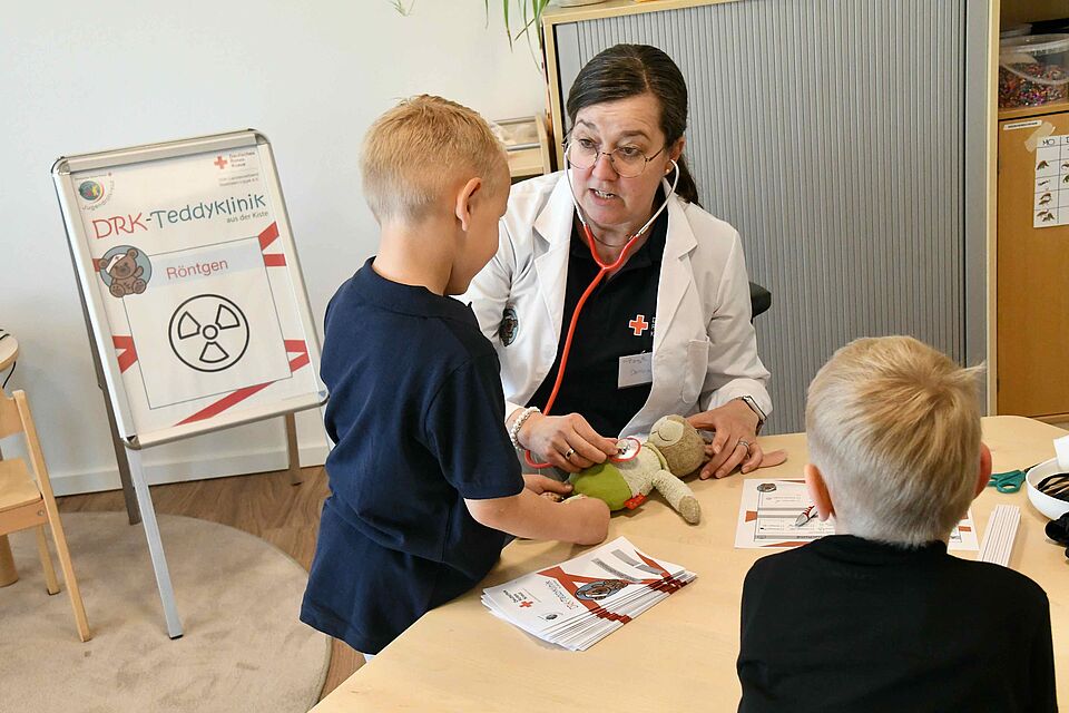 Nach Reden und Frühstücksbüffet belagerten am Nachmittag viele Kinder aus Vreden mit Eltern die neue Kita: Eine Tombola lockte mit vielen attraktiven Preisen, in der DRK-Teddyklinik wurde so manches Schnuffeltier „operiert“ und ihm neues Leben eingehaucht, die Spiel- und Bewegungsstationen waren beliebter Anziehungspunkt, und bei Snacks und Getränken wurde auch das Nachhaltigkeits-Kreativangebot gut angenommen: Basteln mit recycelten Materialien, um Nachhaltigkeit spielerisch zu vermitteln – wie es das Konzept der Kita „Berkelvilla“ vorsieht.