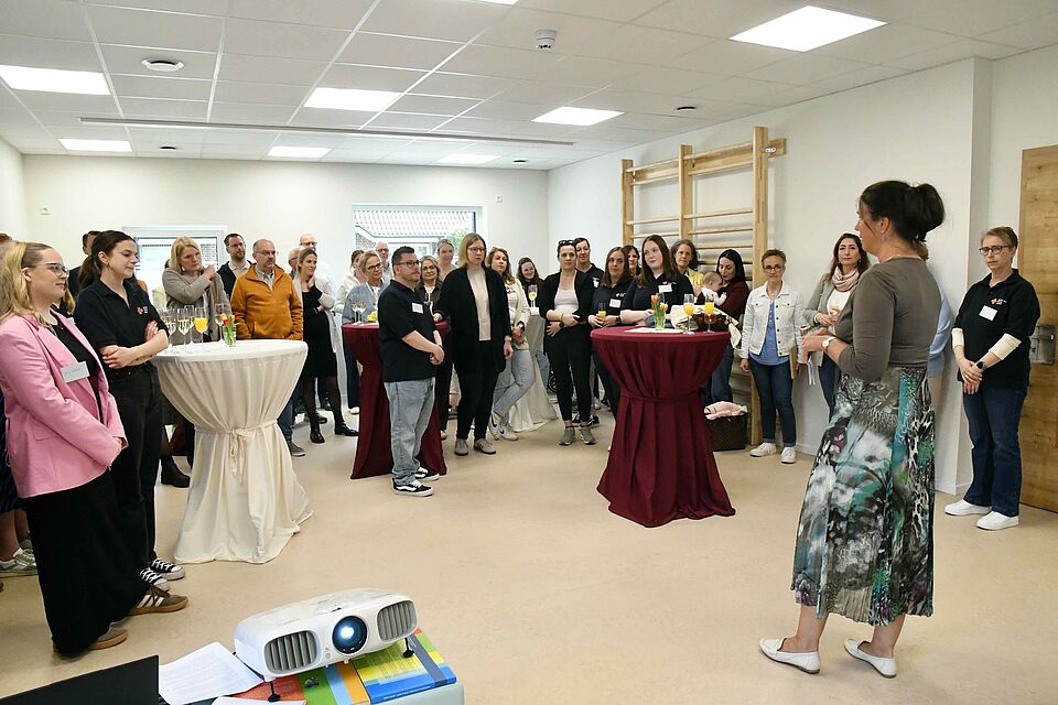 Emily Weitenberg blickte zurück auf ein erstes „halbes Jahr intensiver Arbeit mit unserer pädagogischen Haltung und unserem Konzept: Wir möchten eine nachhaltige Zukunft gestalten“, unterstrich Weitenberg vor vielen Kolleginnen aus anderen DRK-Kitas im Kreis Borken. Deren Zahl ist mit der DRK-„Berkelvilla“ auf 32 gestiegen. Das Herstellen eigener Lebensmittel, Forschen und Lesen seien feste Bestandteile; zum Weltrotkreuztag habe eine Körperwoche Platz gefunden. Demnächst sollen Menüpläne zusammen mit den Kindern erstellt werden.