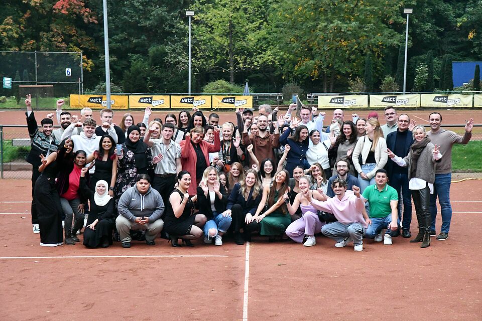Bocholt/Borken (drk-press). Die Pflegeschule des Roten Kreuzes im Kreis Borken mit Standort im Europahaus in Bocholt besteht seit zehn Jahren. Mehr als 70 Schüler und Lehrkräfte nahmen das zum Anlass, zurück und nach vorne zu blicken, und sie verlebten einen launigen Abend mit Unterstützung der „Bissigen Paula“ im Vereinsheim des TC Blau-Weiß Bocholt.