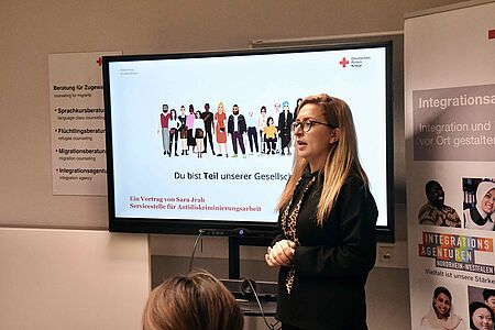 Susanne Biallas, Bereichsleiterin Pflege beim Roten Kreuz im Kreis Borken mit mehr als 30-jähriger Berufserfahrung, stellt das Konzept vor und beantwortet Fragen der Interessierten.…