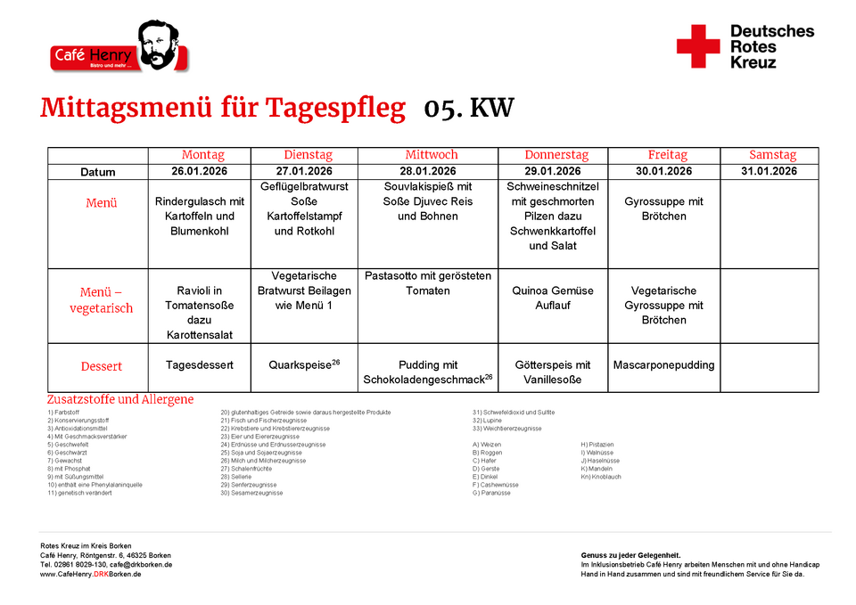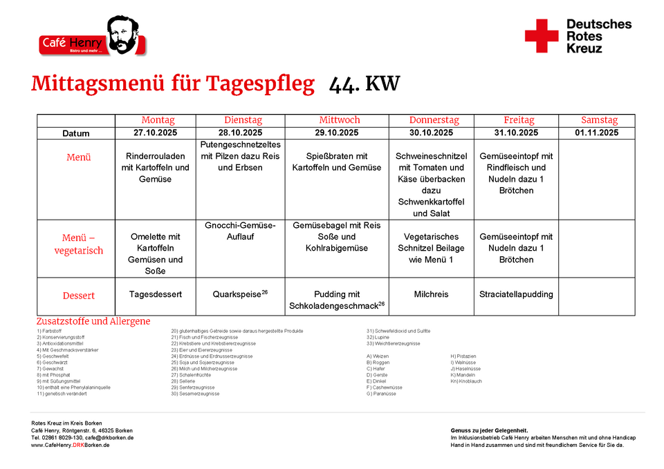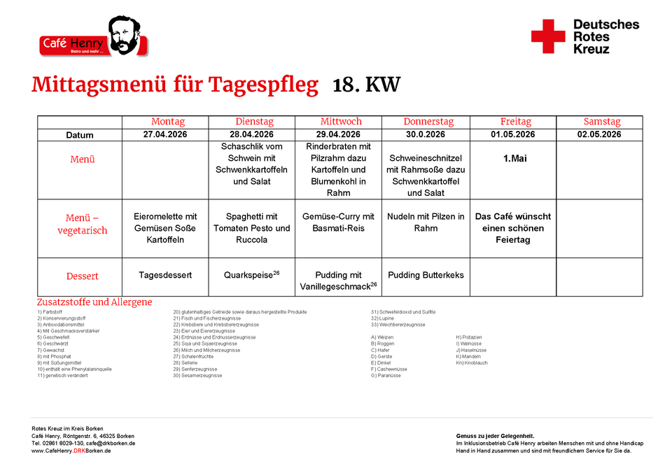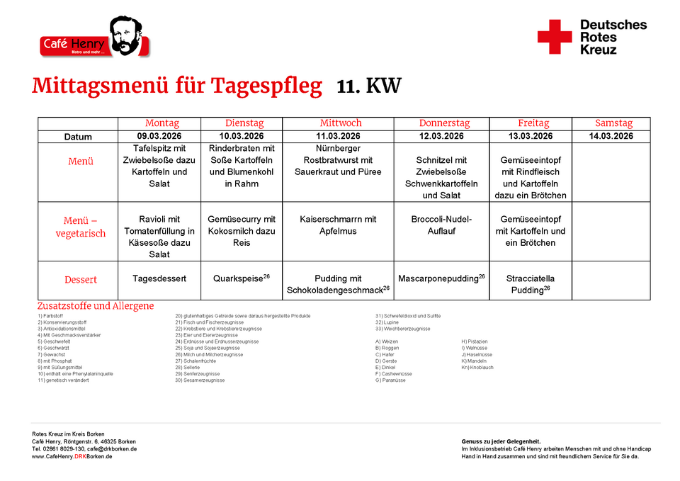 Als Caterer versorgen wir auch Tagespflegeeinrichtungen mit Mittagstisch. Bei den wöchentlichen Speiseplänen stehen täglich zwei Menüs zur Auswahl, zwischen denen man wählen kann. Selbstverständlich gehen wir auch auf individuelle Ernährungsbedürfnisse ein.