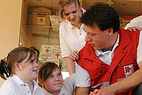 Menschen in Not brauchen Hilfe. Diese Hilfe nennt man: Erste Hilfe. Beim Deutschen Roten Kreuz können Sie Erste Hilfe lernen. Dazu gibt es einen Kurs. Erste Hilfe ist sehr wichtig.